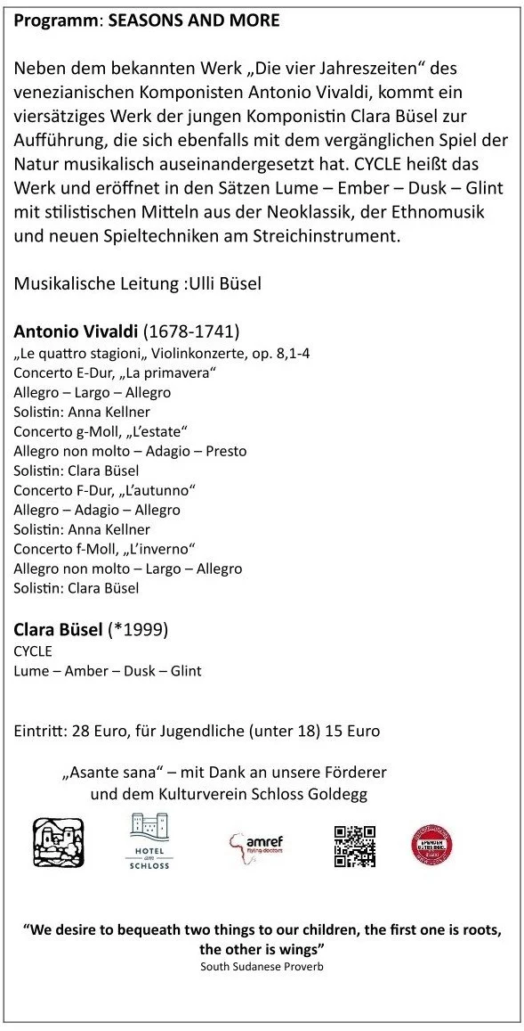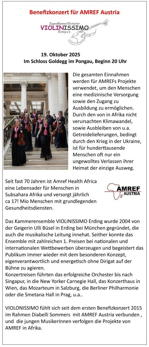 19. Oktober - Benefizkonzert für AMREF Austria: VIOLINISSIMO